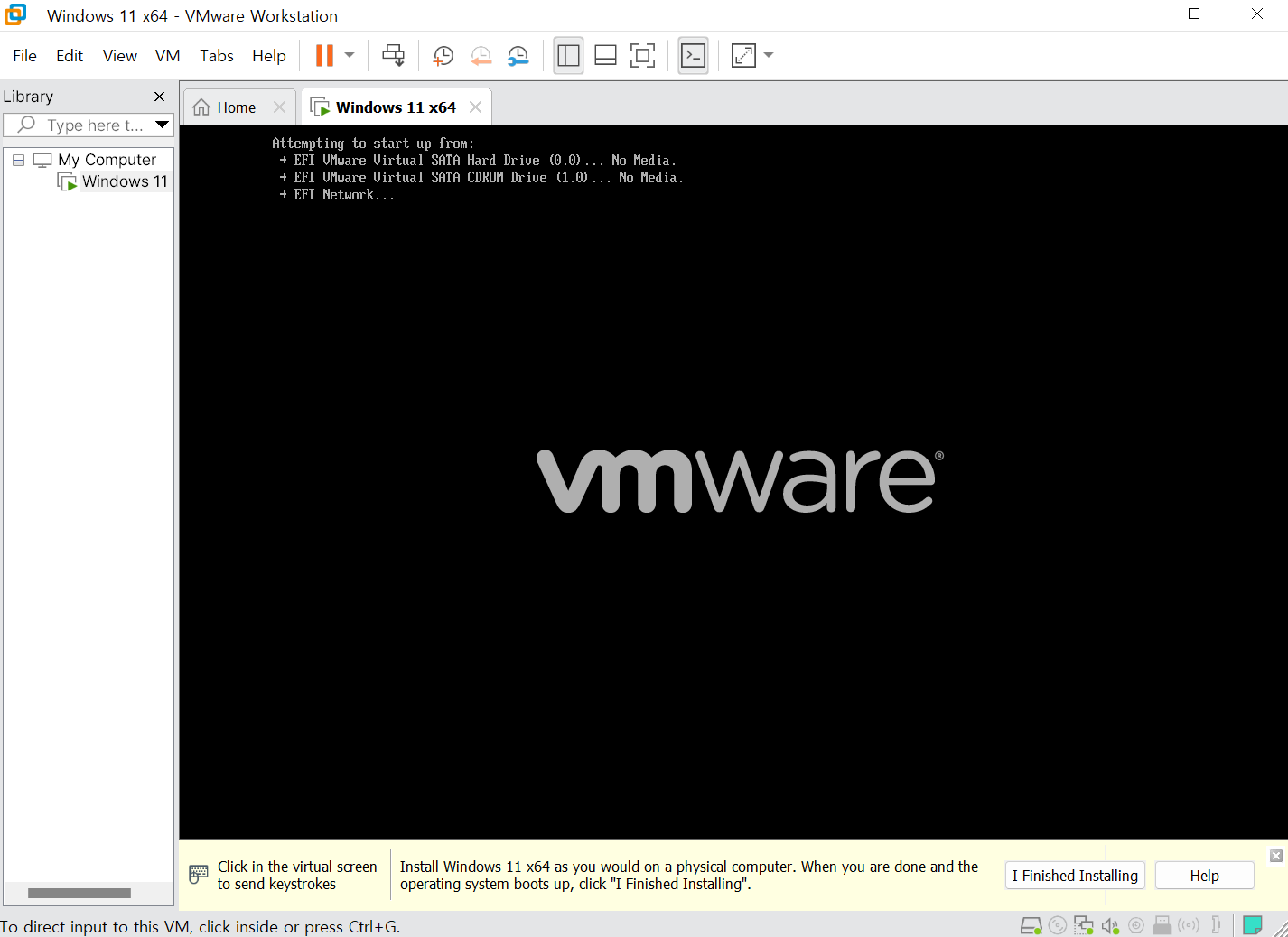 VMWare Workstation์ผ๋ก ๊ฐ์ ํ๊ฒฝ์์ ์๋์ฐ ์ค์น
